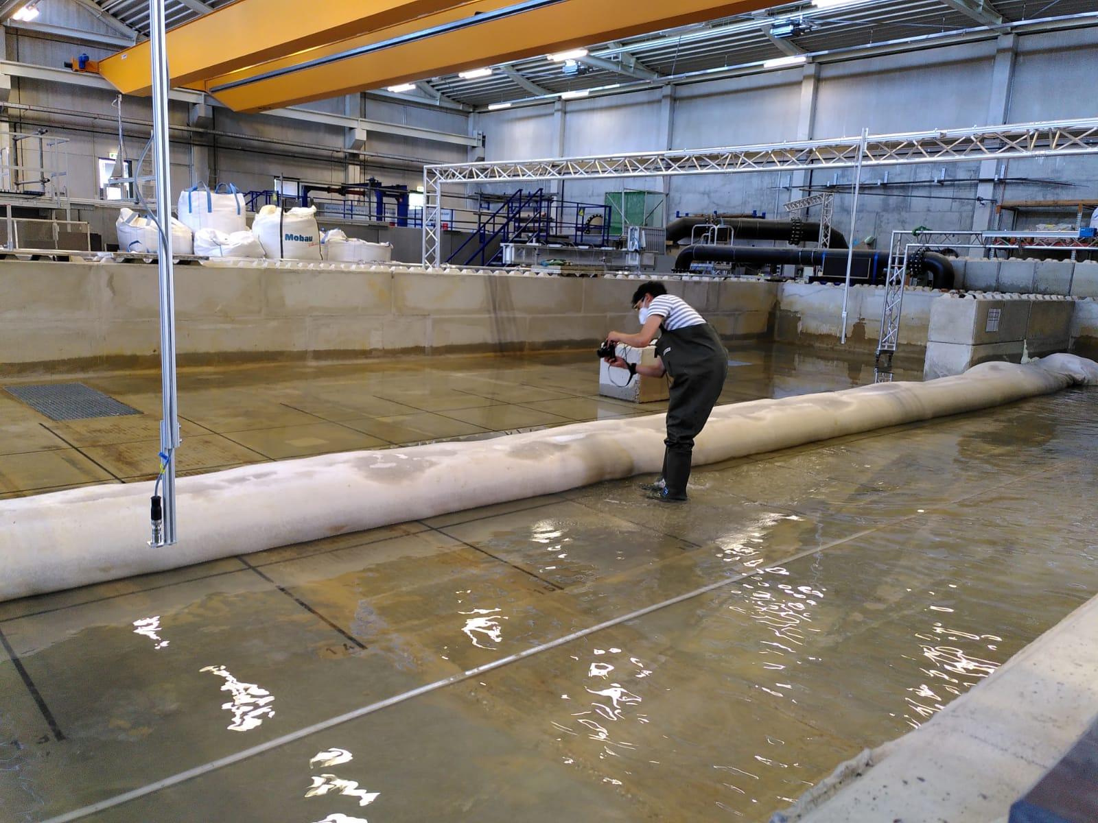 In order to construct the dike of the future, the "InnKuBaTubes" project, funded by the ERDF NRW program, therefore researched dikes and dams made of geotextile tubes filled with soil. This innovative construction method makes it possible to build steeper embankments with less material and land consumption and to create dam constructions that are resistant to overflow. At the same time, the combination of textile and soil makes it possible to use soils that were previously unsuitable for dam construction. This enables the sustainable and resource-saving construction of such structures, which helps to achieve the EU climate targets.