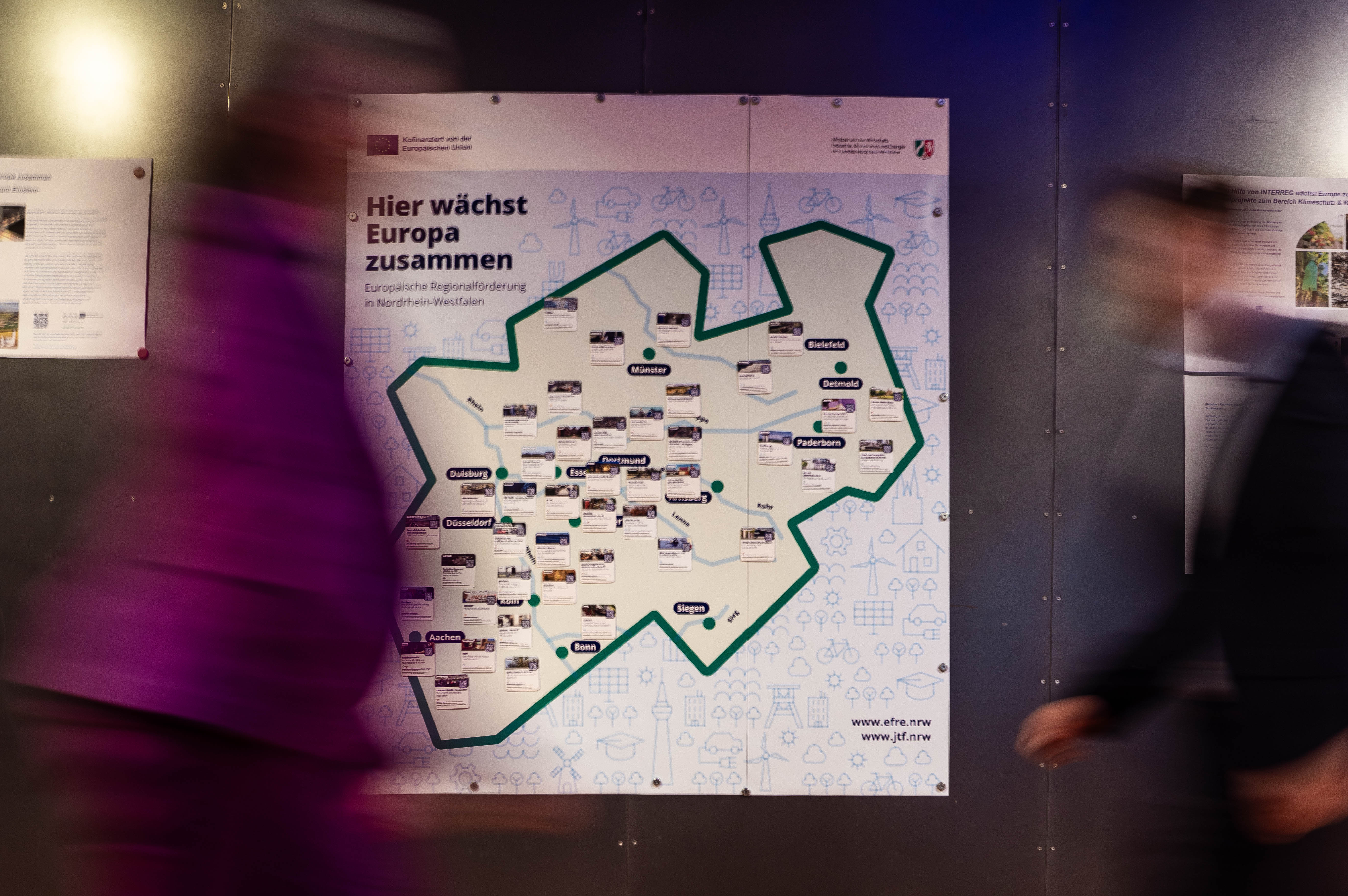 Wie europäische Unterstützung wirkt, hat auch die EFRE/JTF-NRW-Halbzeitkonferenz im Februar 2026 gezeigt: Rund 400 Gäste konnten sich davon überzeugen, wie Projekte aus NRW dazu beitragen, Klimaschutz, Innovation, wirtschaftliche Transformation, Wettbewerbshähigkeit und Lebensqualität voranzubringen.