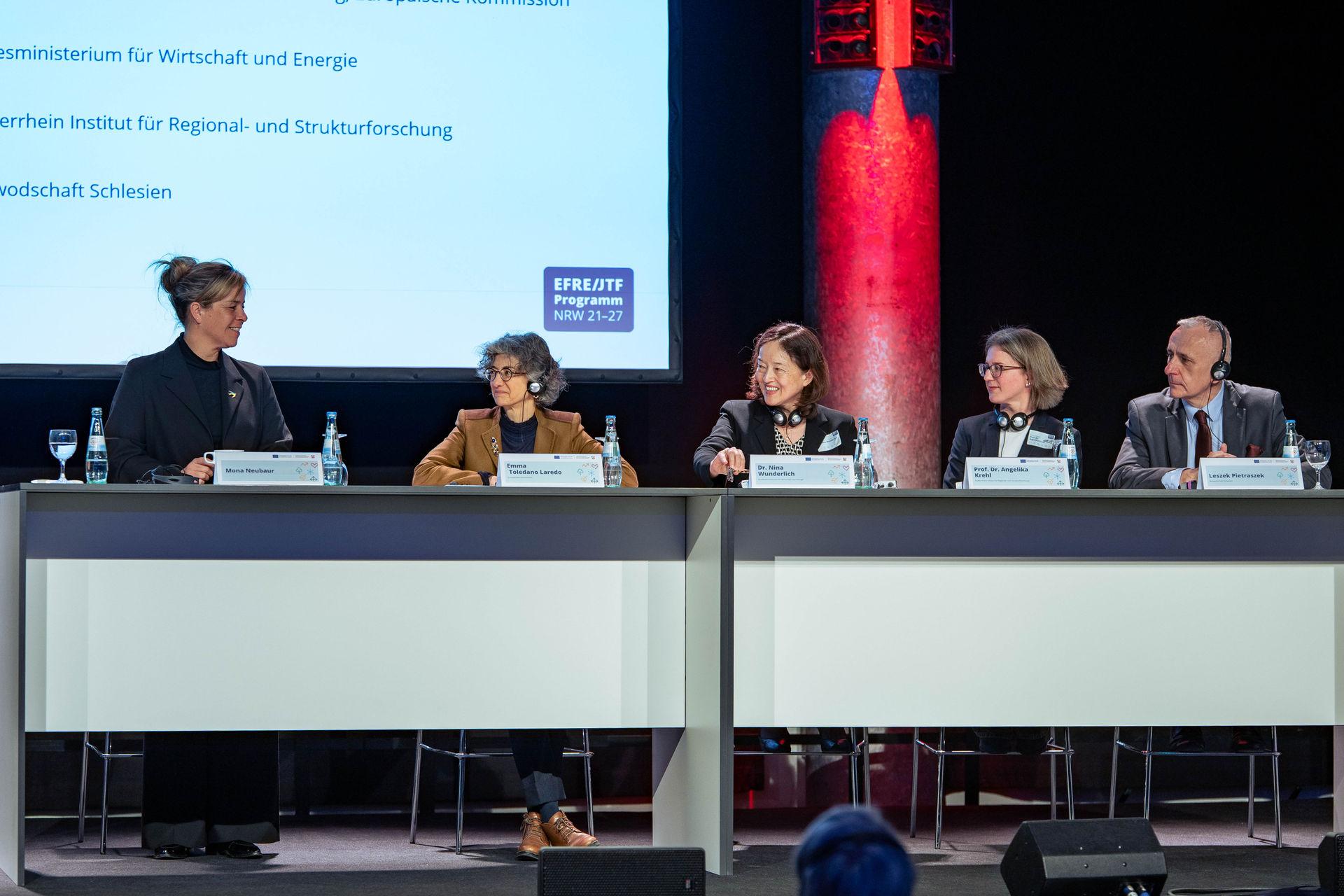 Raffaele Fitto, Vizepräsident der EU-Kommission, betonte in einer Videobotschaft, Nordrhein-Westfalen habe „die strategische Entscheidung getroffen, in kritische Technologien, saubere Industrien und industrielle Resilienz zu investieren. Mit anderen Worten: die Zukunft. Was Sie hier tun, ist ein Leuchtturm für Qualität.“ Seit 2021 wurden hierzulande mit europäischen Fördermitteln mehr als 3.100 Projekte auf den Weg gebracht, die den Alltag der Bürgerinnen und Bürger konkret verbessern und die Wirtschaft zukunftsfest machen. EFRE und JTF wirken aber nicht nur in NRW: Leszek Pietraszek, stellvertretender Marschall der Woiwodschaft Schlesien in Polen, stellte mit beeindruckenden Beispielen auf der Konferenz vor, welchen Anschub die europäische Strukturförderung für die Transformation in seiner Heimat geleistet hat.